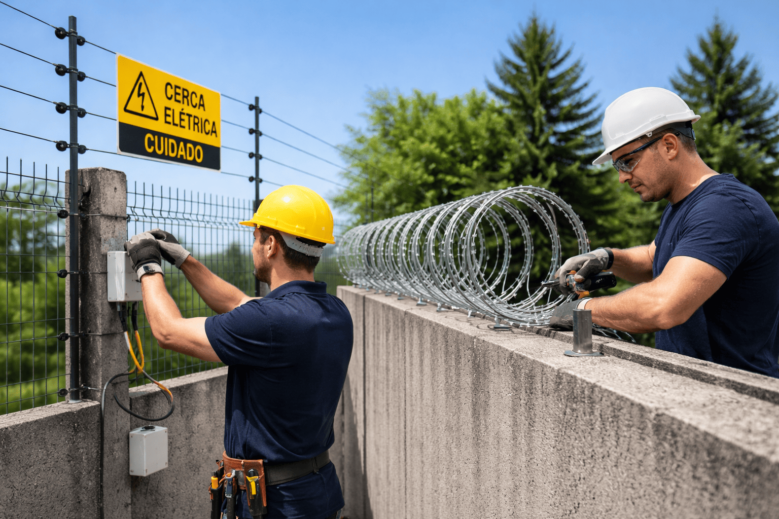 Proteção perimetral com cerca elétrica e sensores, prevenindo invasões. Soluções para gerenciamento de entrada e saída de pessoas em residências, condomínios e empresas.